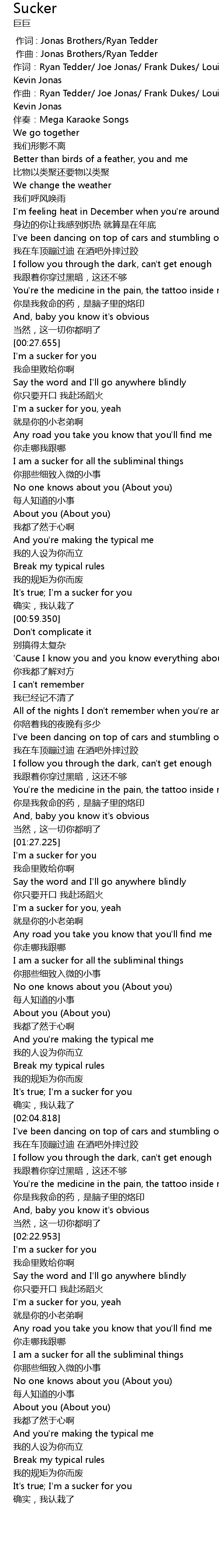 | [00:00.000] | 作词 : Jonas Brothers/Ryan Tedder |