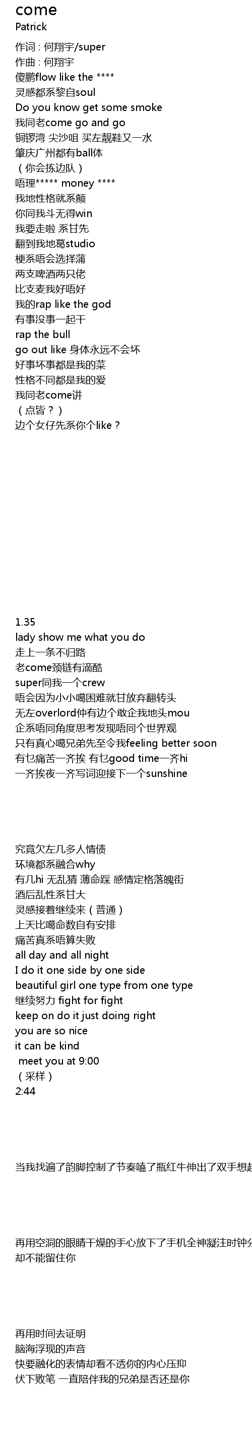 | 作词 : 何翔宇/super | |