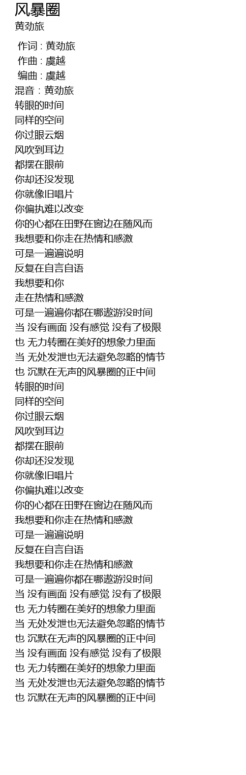 | [00:03.369] | 混音:黄劲旅 |