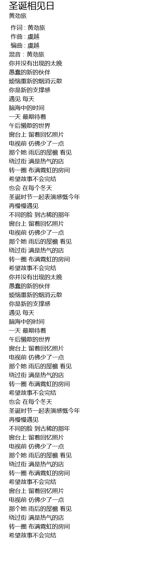 | [01:43.396] | 圣诞时节一起表演感慨今年 |