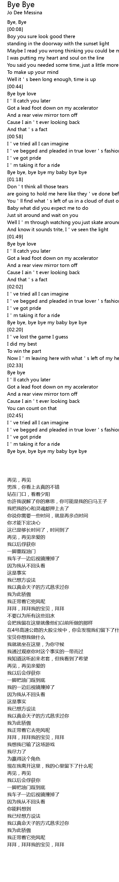 | [02:57] | Bye bye, bye bye my baby bye bye |