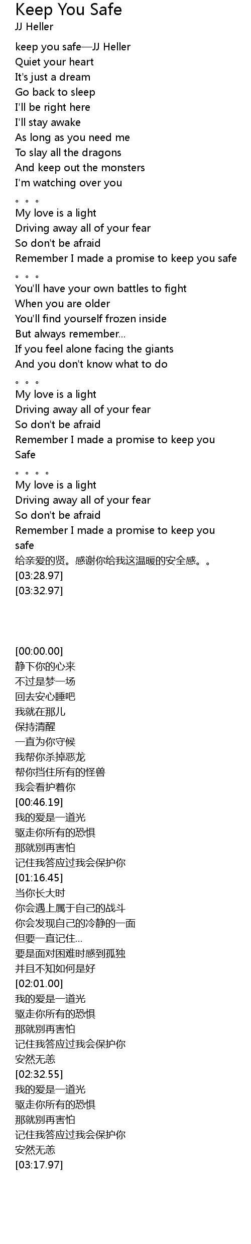 | [01:06.48] | Remember I made a promise to keep you safe |
