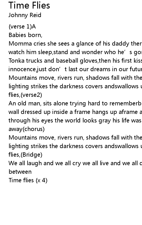 | Mountains move, rivers run, shadows fall with the setting sun,thunder rolls and lighting strikes the darkness covers andswallows up the light… and time flies,(verse2) | |