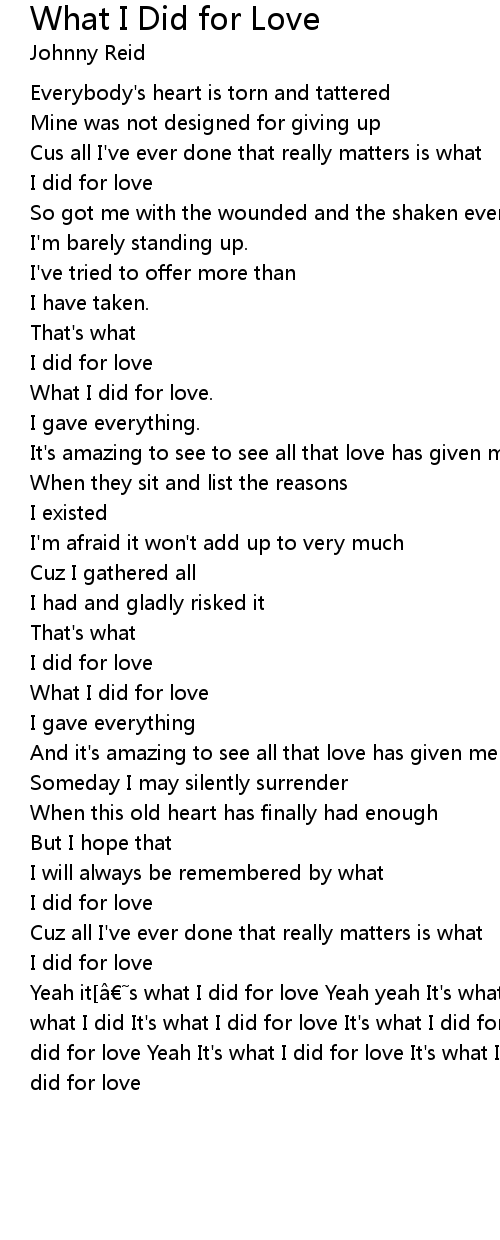 | Yeah it[‘s what I did for love Yeah yeah It's what I did for love It's what I did It's what I did for love It's what I did for love Yeah It's what I did for love Yeah It's what I did for love It's what I did for love It's what I did for love |