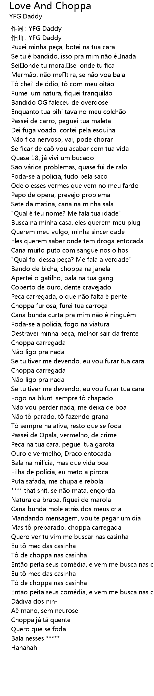 | [02:01.344] | Ent o peita seus come dia, e vem me busca nas casinha |