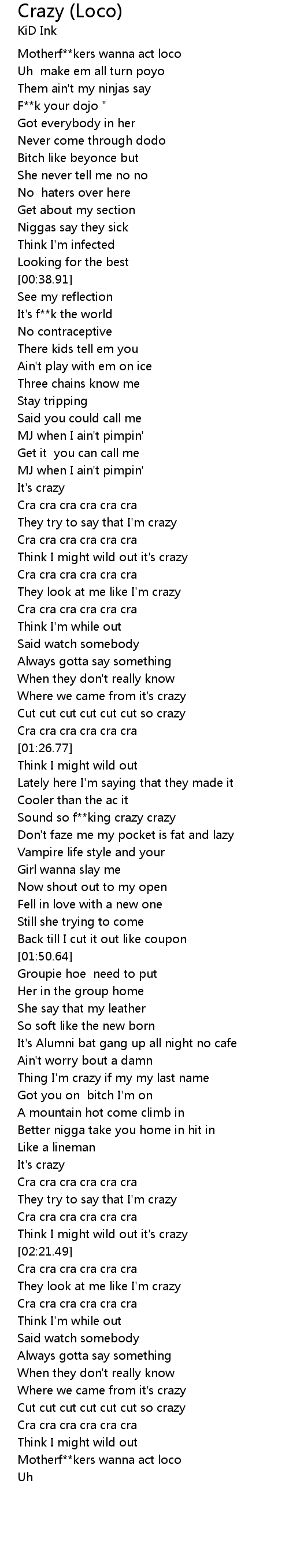 | [02:02.39] | Thing I'm crazy if my my last name |