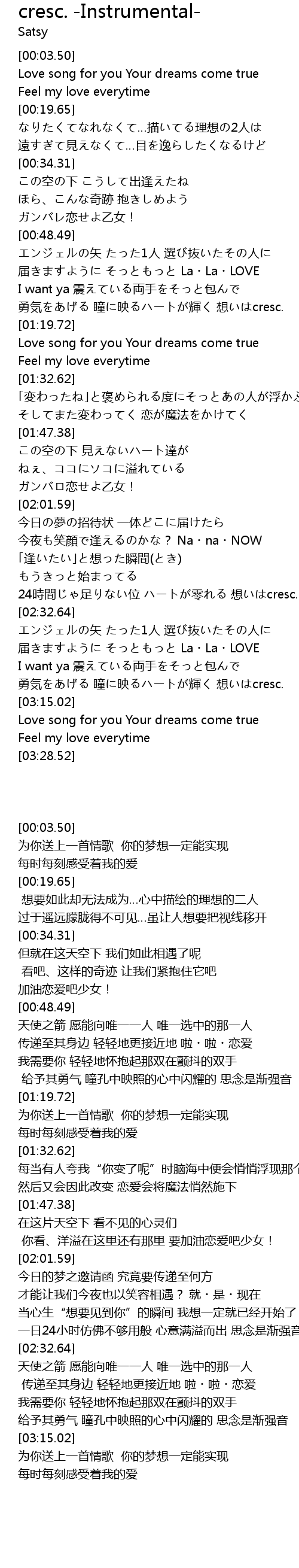 | [03:16.90] | Love song for you Your dreams come true |