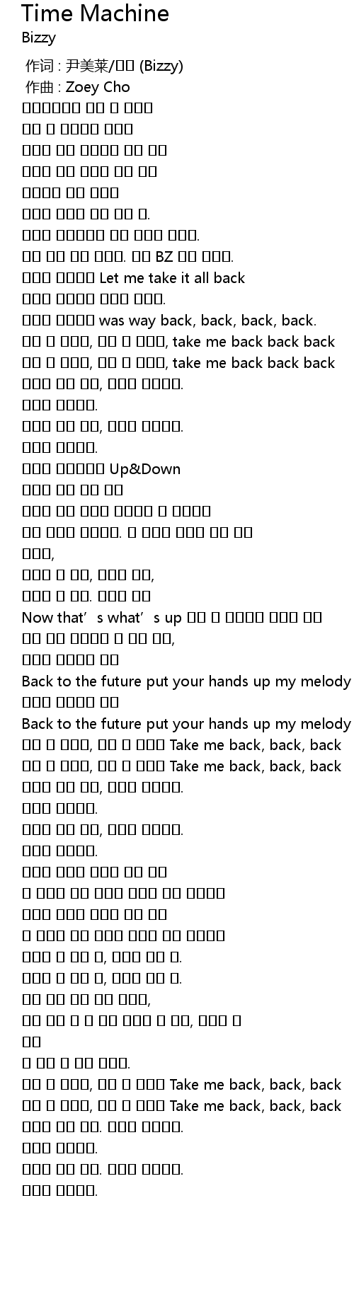 | [00:36.379] | 음악은 타임머신 was way back, back, back, back. |
