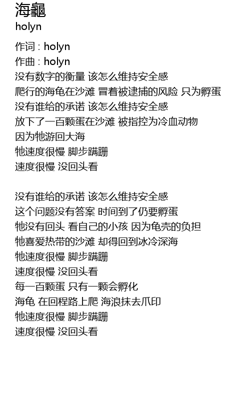 | 海龟 在回程路上爬 海浪抹去爪印 | |