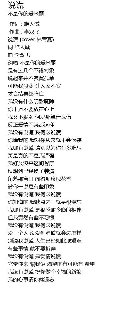 | [00:00.000] | 说谎 (cover 林宥嘉) |
