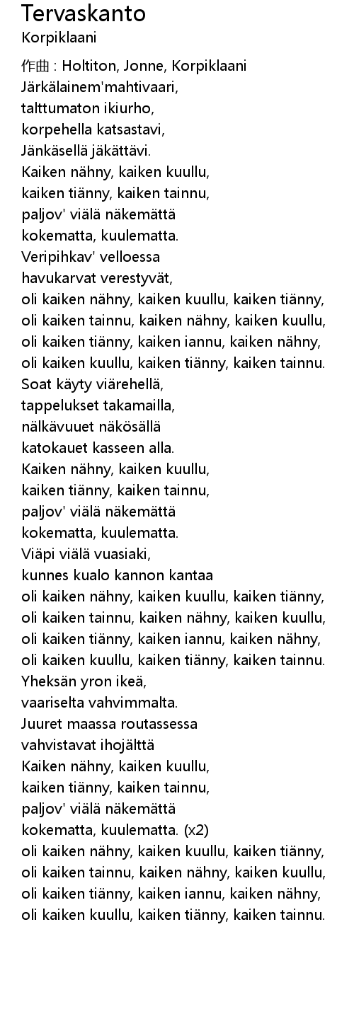 | 作曲 : Holtiton, Jonne, Korpiklaani | |
