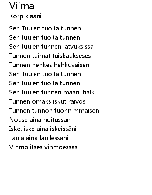 | Song | Viima |