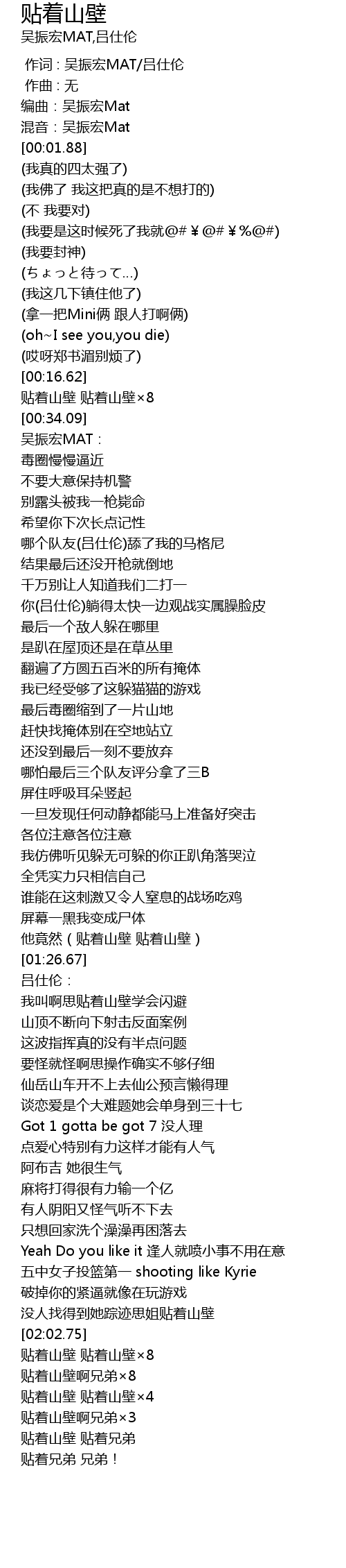 | [02:21.32] | 贴着山壁啊兄弟×8 |