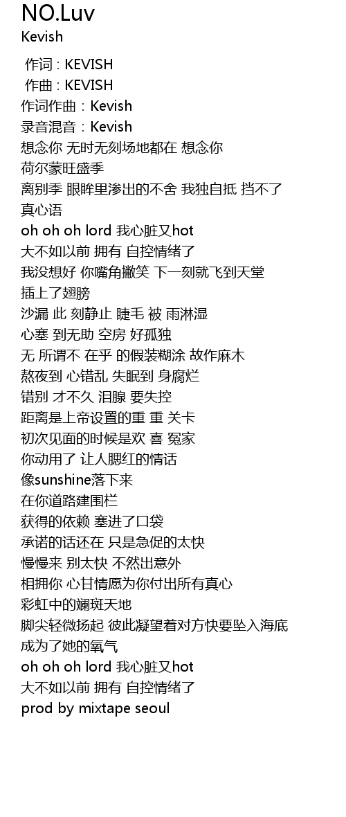 | [00:00.000] | 作词 : KEVISH |