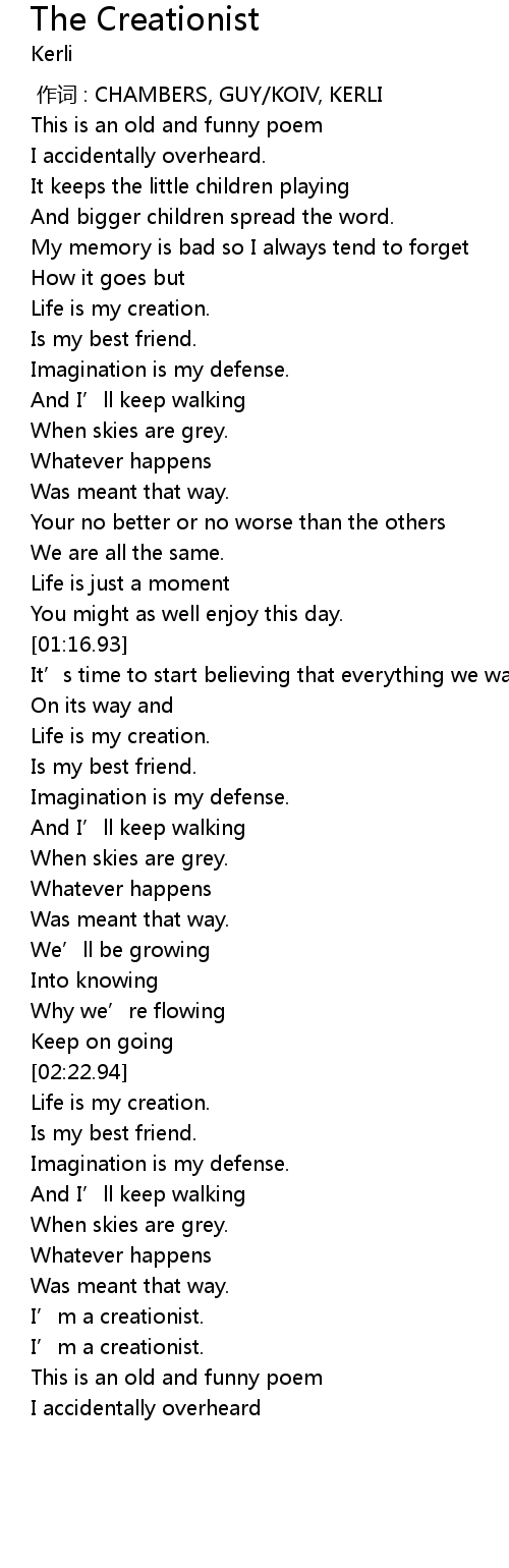 | [03:01.42] | I' m a creationist. |