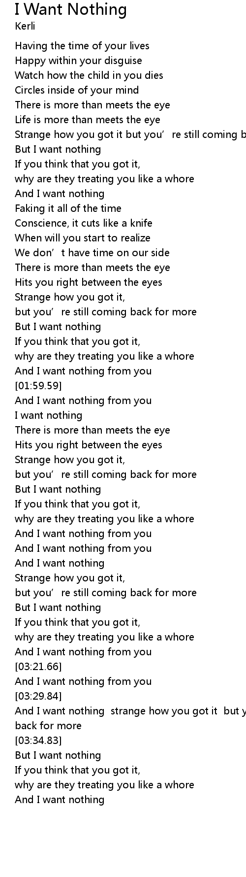 | [03:30.52] | And I want nothing strange how you got it but you’re still coming back for more |
