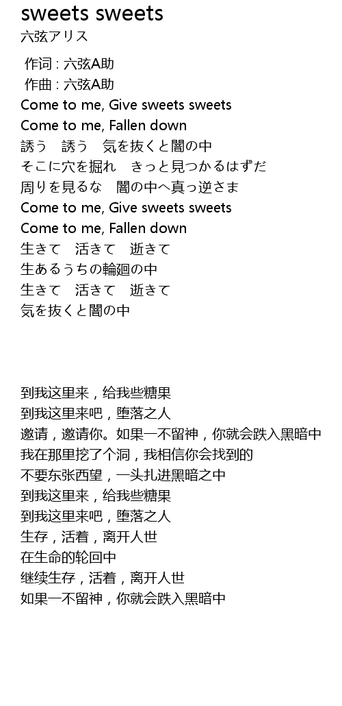 | [00:30.943] | Come to me, Give sweets sweets |