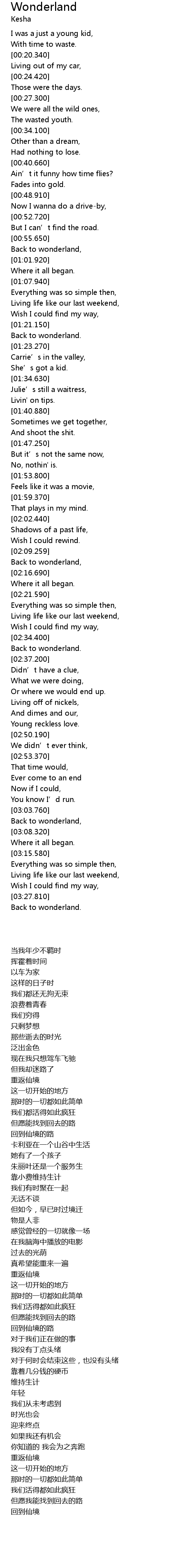 | [00:57.910] | Back to wonderland, |