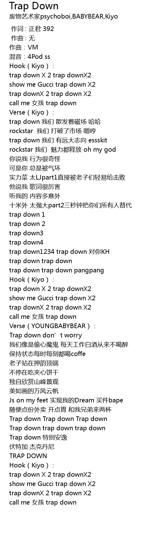 | [01:38.699] | trap downX 2 trap down X2 |