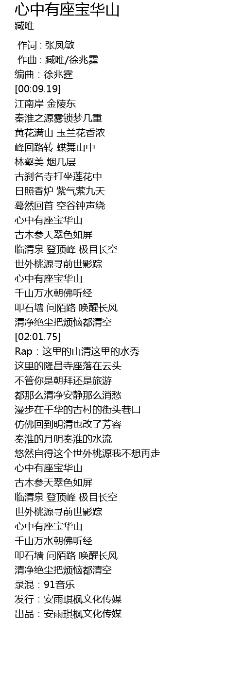 | [01:13.89] | 心中有座宝华山 |