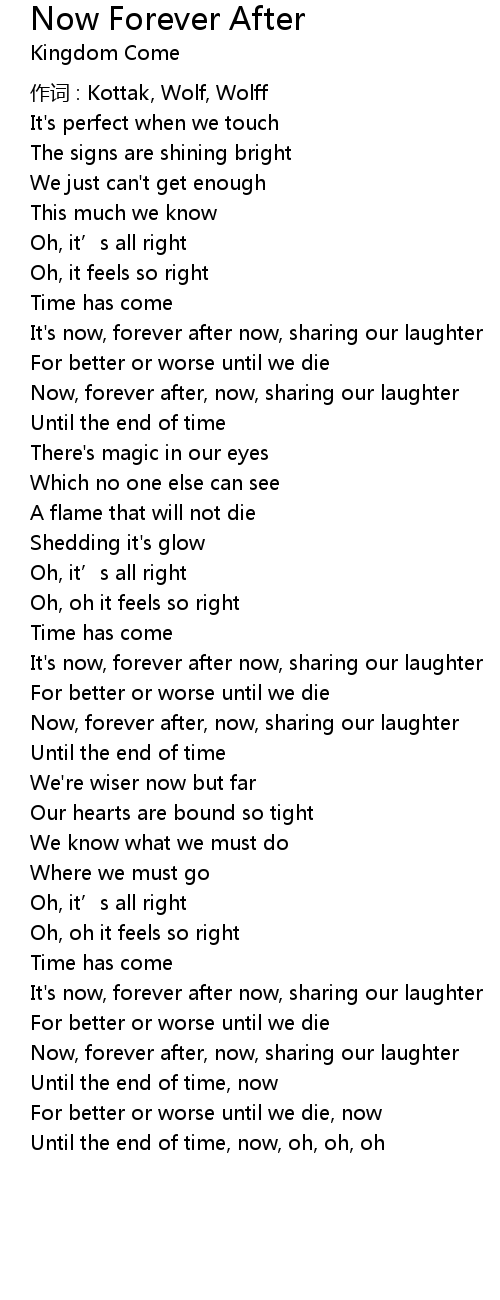 | It' s now, forever after now, sharing our laughter | |