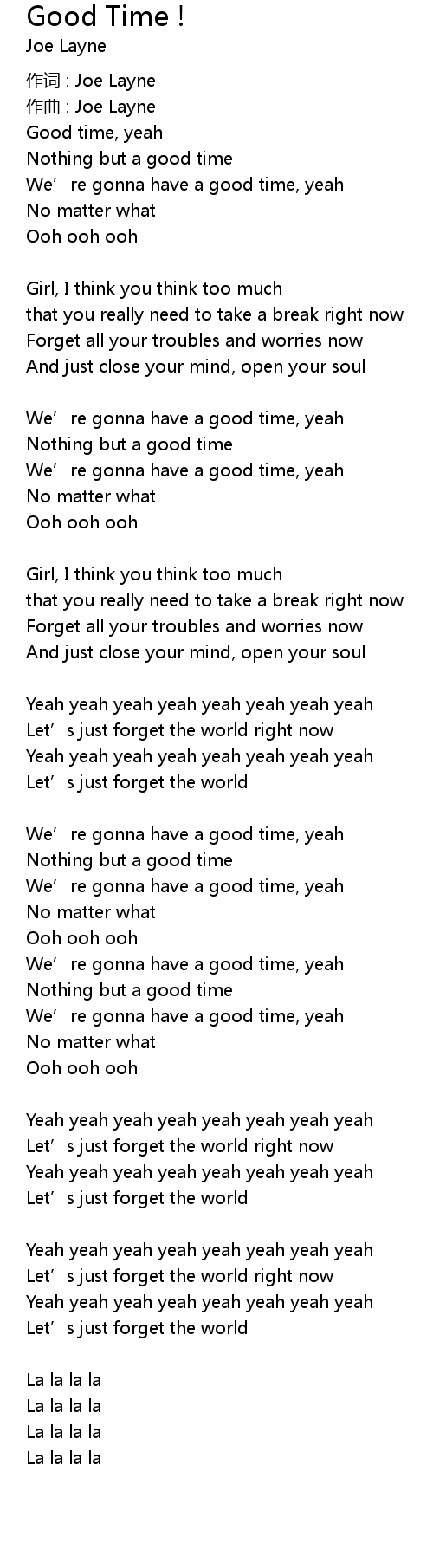 | Good time, yeah | |