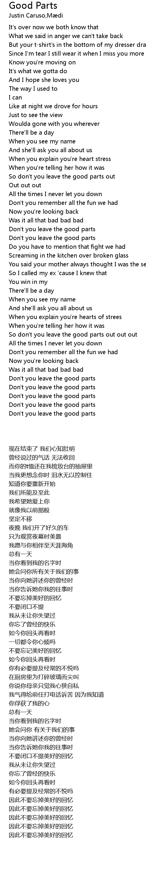 So don't you leave the good parts out |