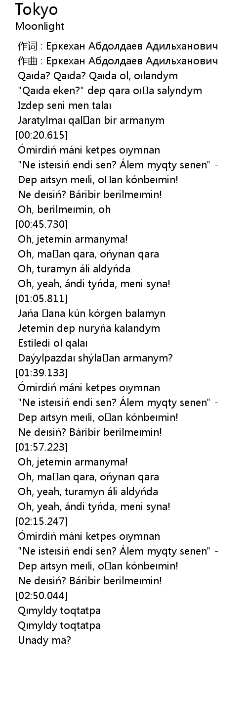 | [01:35.882] | Daýylpazdaı shýlaǵan armanym? |