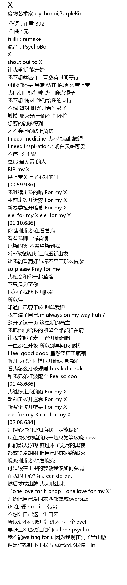 | [02:30.180] | “one love for hiphop,one love for my X” |