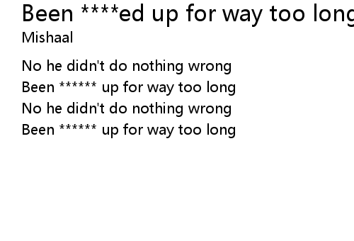 | Song | Been ****ed up for way too long |