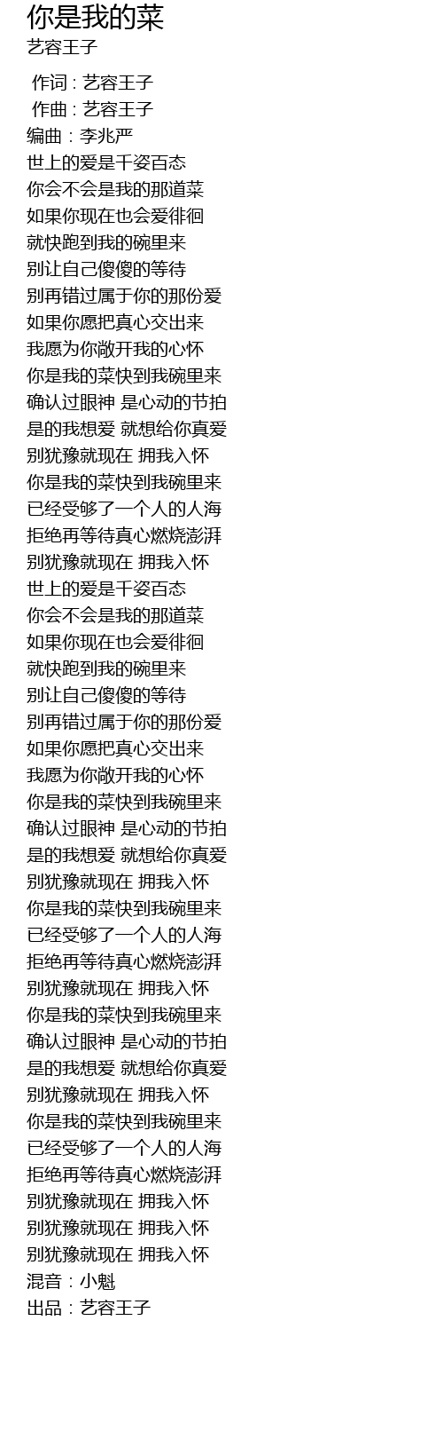 | [03:36.83] | 你是我的菜快到我碗里来 |