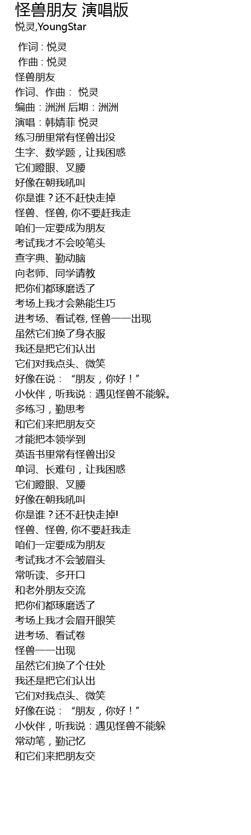 | [00:03.934] | 怪兽朋友 |