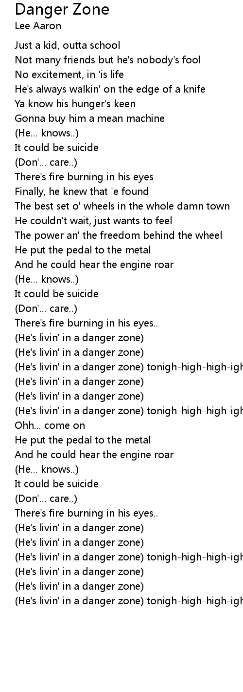 (He's livin' in a danger zone) tonigh-high-high-ight |