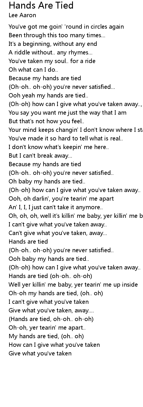 | Hands are tied (oh-oh.. oh-oh) | |