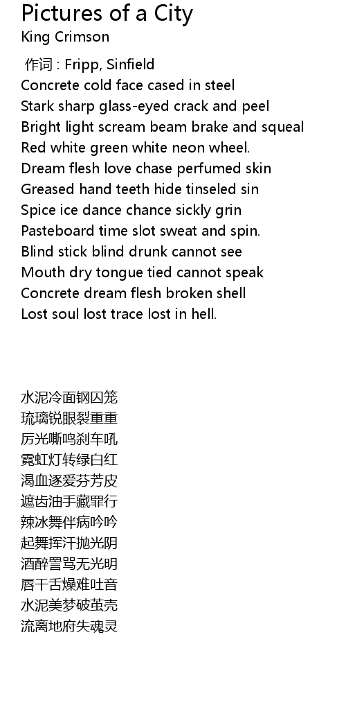 | [00:00.00] | 作词 : Fripp, Sinfield |