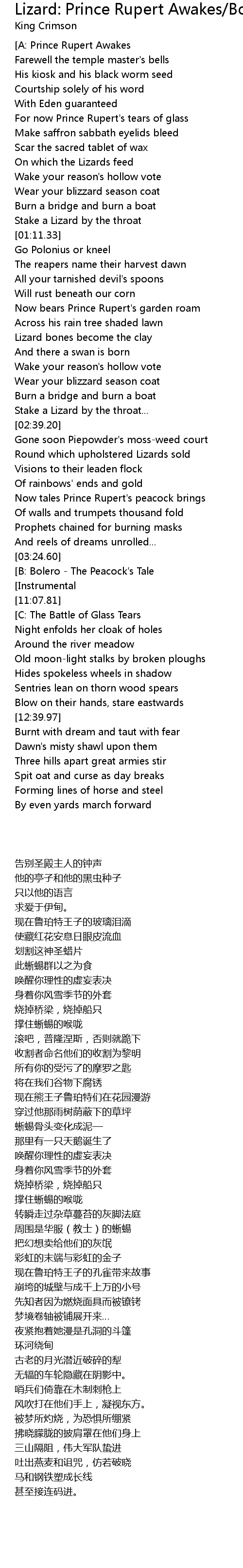 Lizard: Prince Rupert Awakes/Bolero: The Peacock's Tale/The Battle of G Lyrics