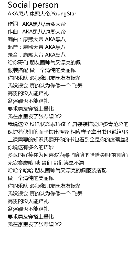 | 作词 : AKA黑八/康熙大帝 | |