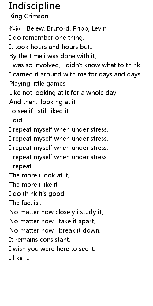 | 作词 : Belew, Bruford, Fripp, Levin | |