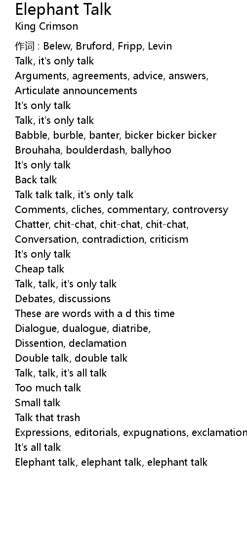 | Song | Elephant Talk |