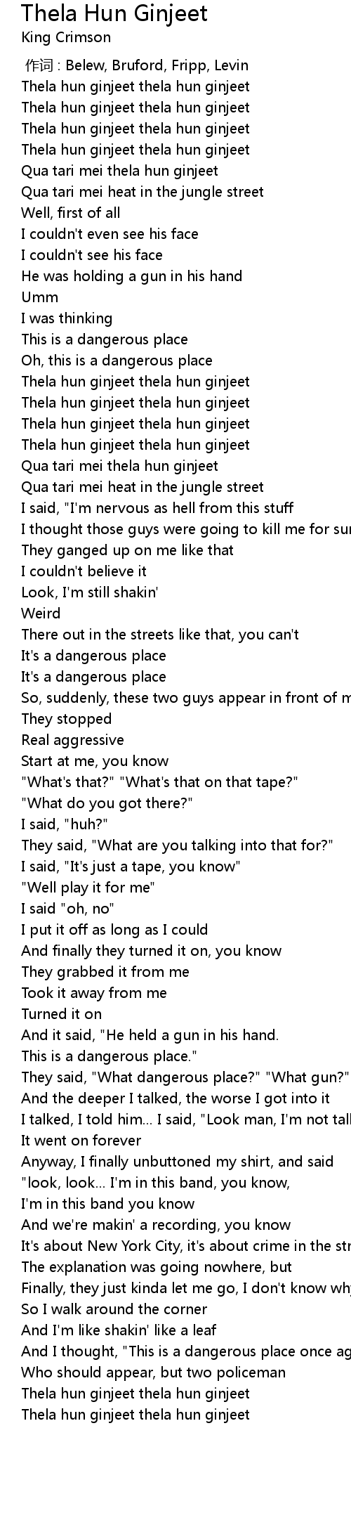 | [00:00.00] | 作词 : Belew, Bruford, Fripp, Levin |