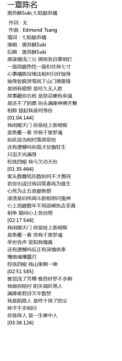| [00:01.000] | zuo qu : Edmond Tsang |