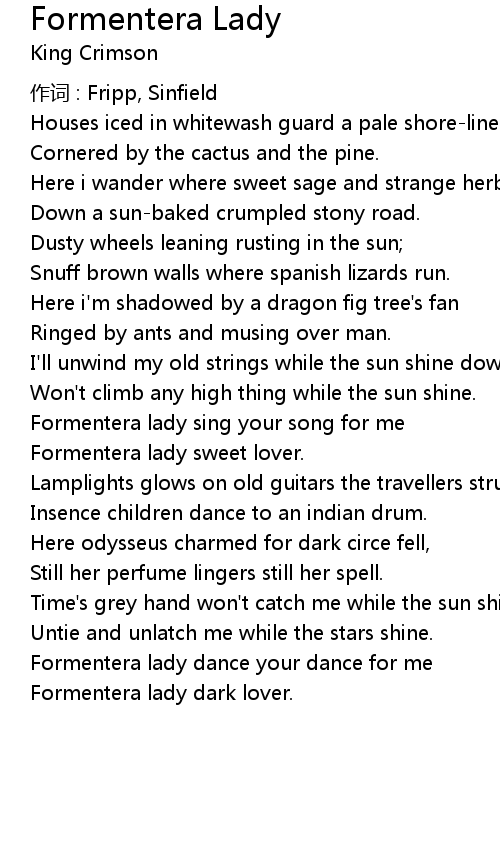 | Formentera lady sing your song for me | |