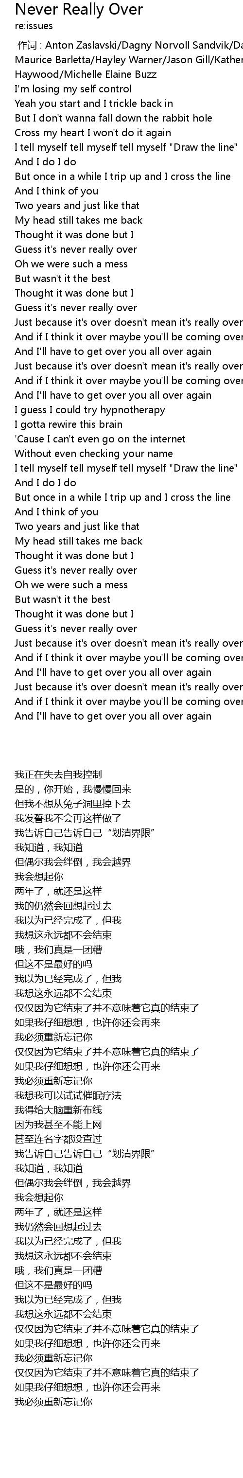 | Song | Never Really Over |
