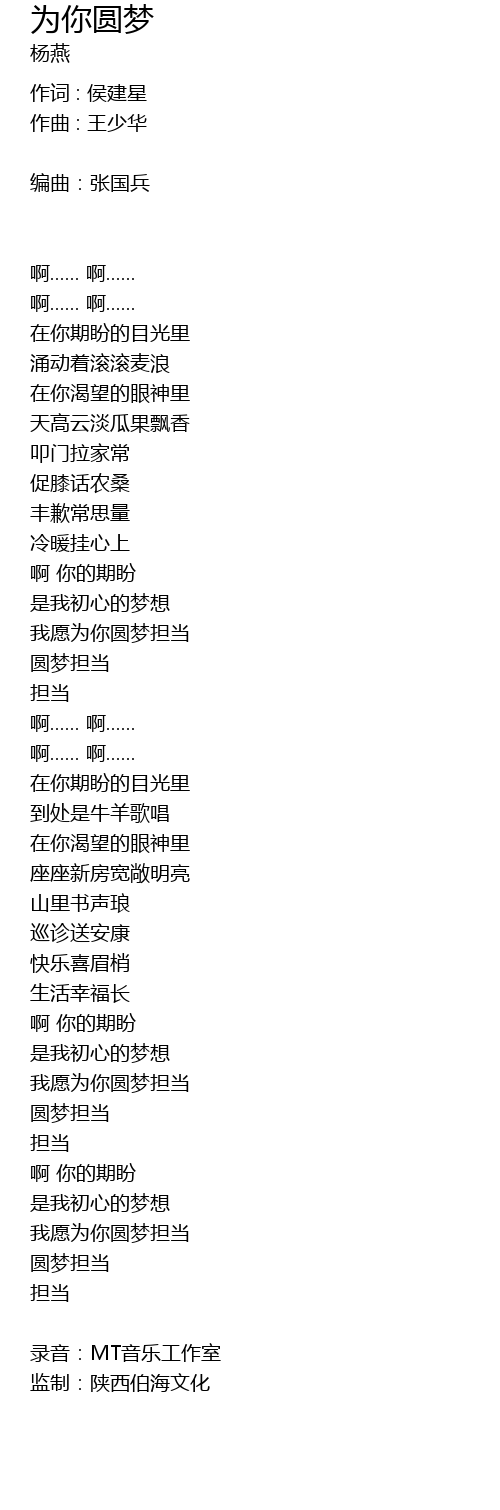 | wǒ yuàn wèi nǐ yuán mèng dān dāng | |