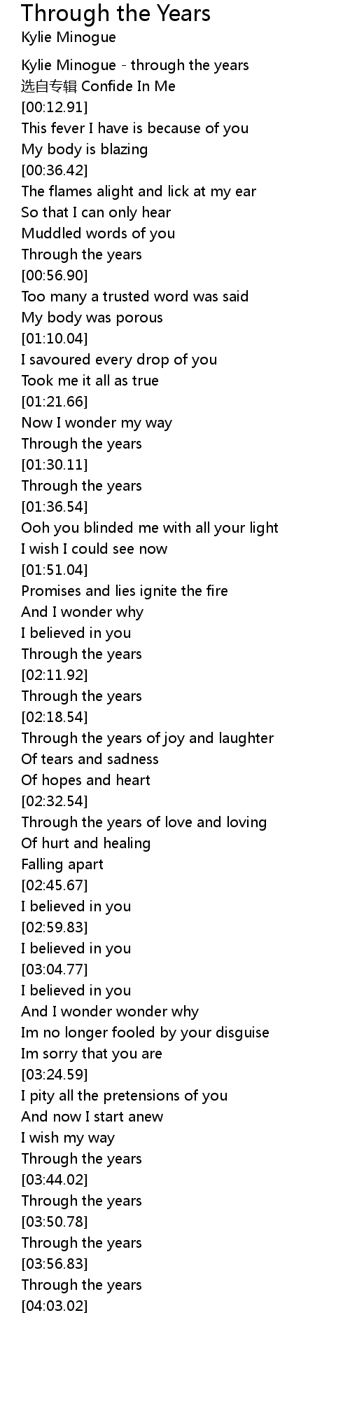 | [01:33.04] | Through the years |