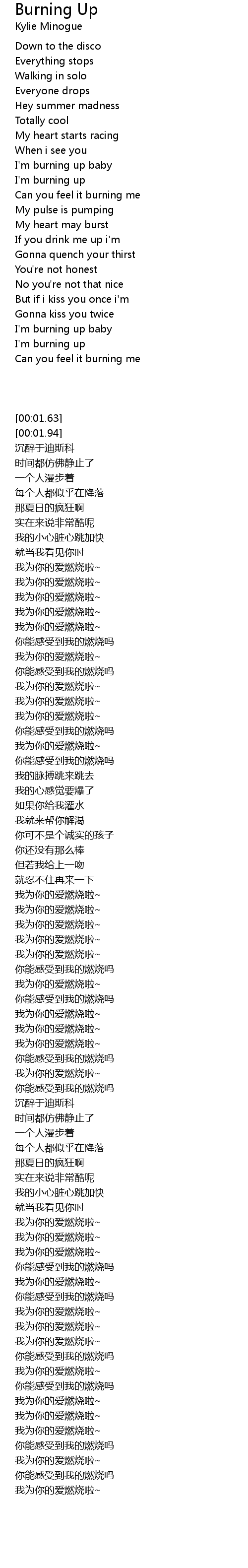 | Song | Burning Up |
