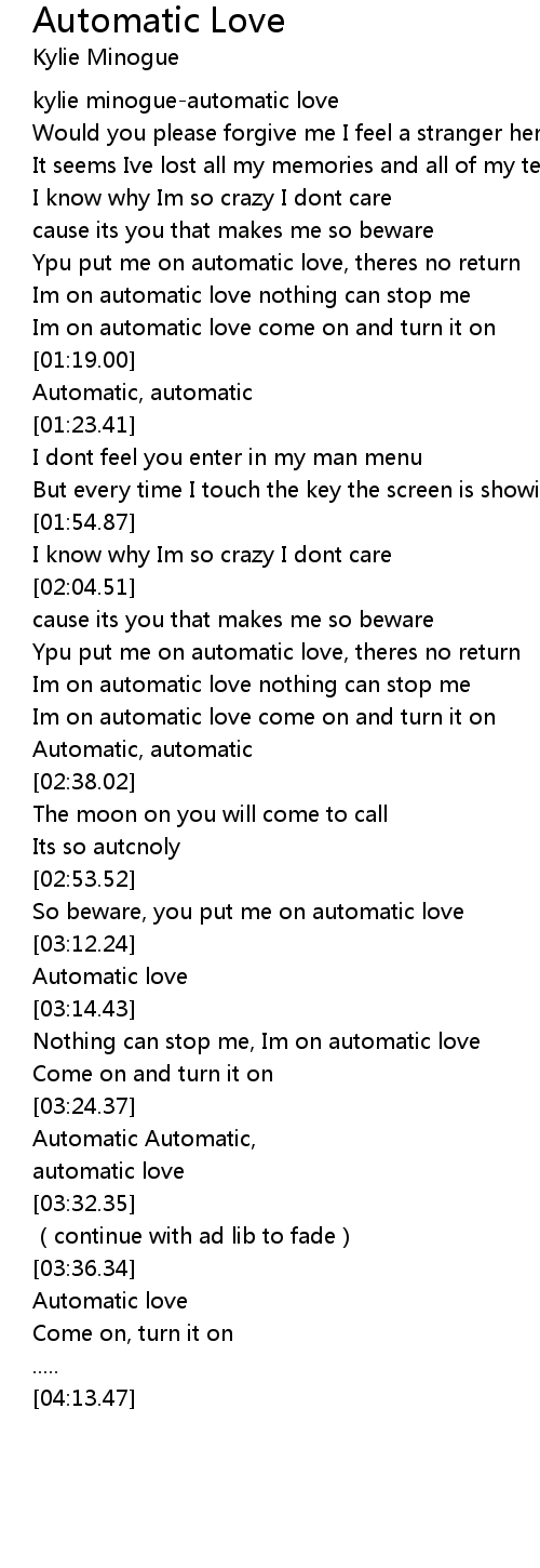 | [03:16.55] | Nothing can stop me, Im on automatic love |