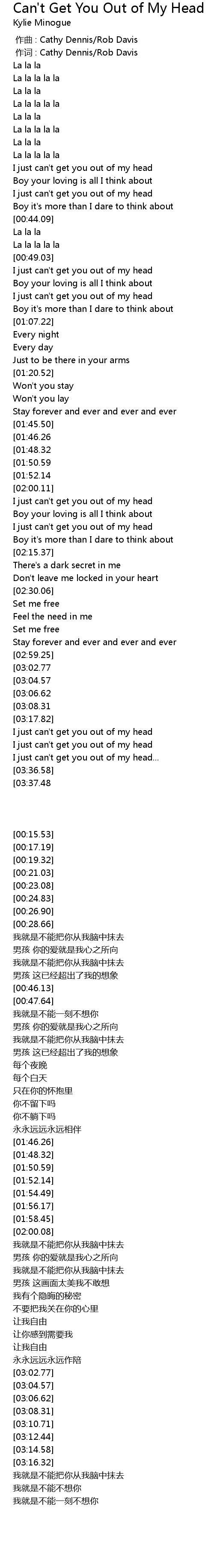 | [00:01.00] | 作词 : Cathy Dennis/Rob Davis |