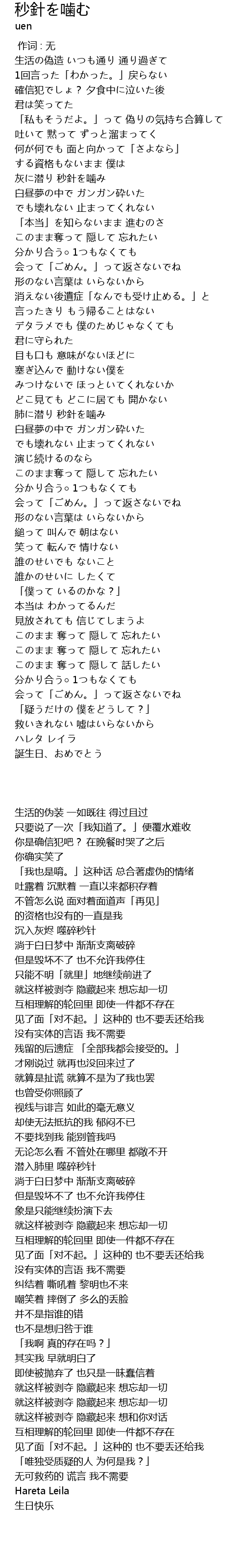 | [02:16.665] | 肺に潜り 秒針を噛み |