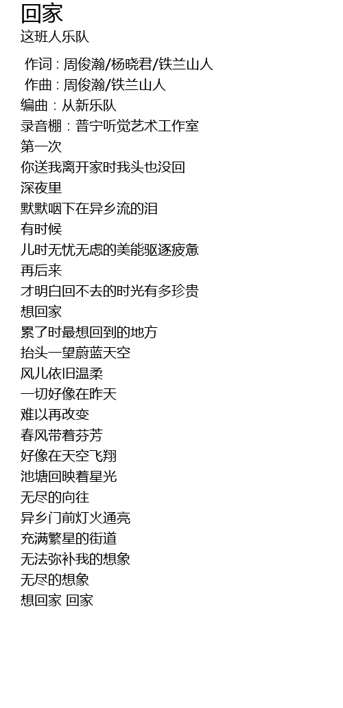 | [01:40.692] | xiǎng huí jiā |